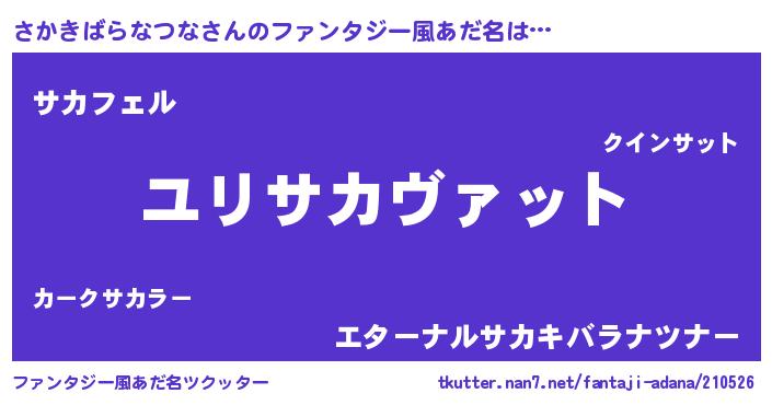 | 男性向けラノベタイトル風あだ名 | 『サカキバラナツナスレイヤー』 |