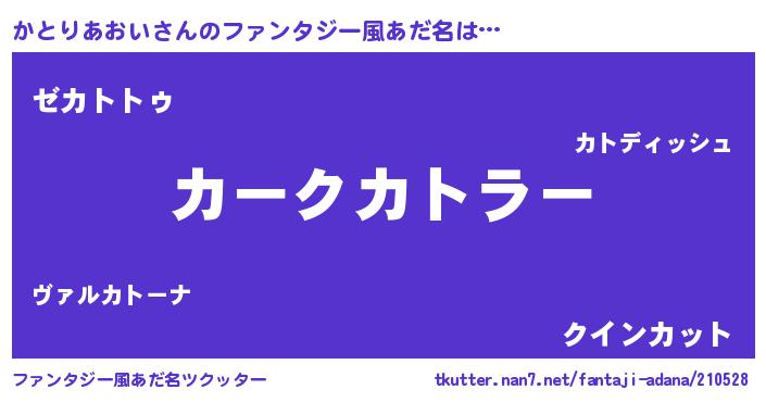 | 意味不明あだ名 | 『自称かとりあおい』 |