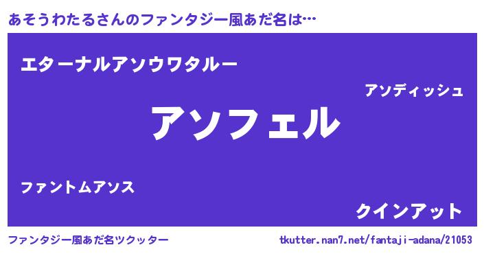 | 男性向けラノベタイトル風あだ名 | 『あそうわたるの憂鬱』 |