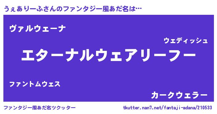 | 意味不明あだ名 | 『うぇありーふフォーエバー』 |