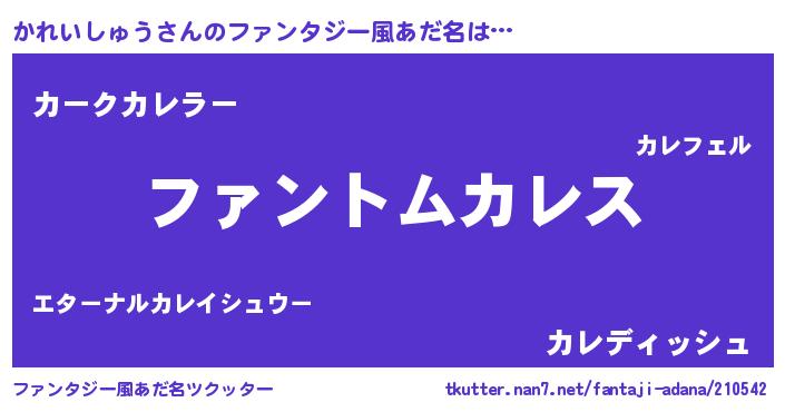 | 男性向けラノベタイトル風あだ名 | 『かれいしゅうの嫁は女の子じゃないと思った?』 |
