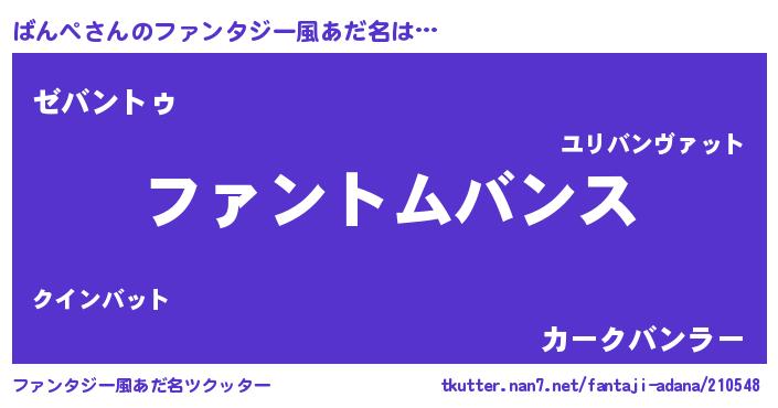 | ヒーロー風カッコイイあだ名 | 『幻影騎士バン』『最強戦士バンペ』 |