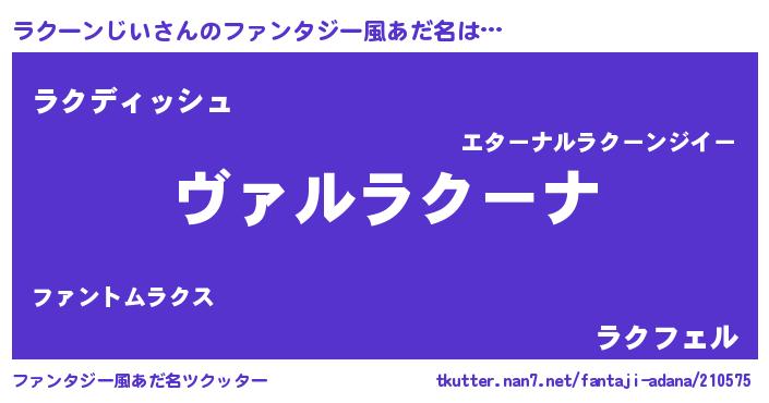 | 意味不明あだ名 | 『住所不定無職ラクーンじい(40歳)』 |
