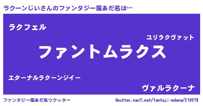 | 男性向けラノベタイトル風あだ名 | 『ダンジョンにラクーンじいを求めるのは間違っているだろうか』 |
