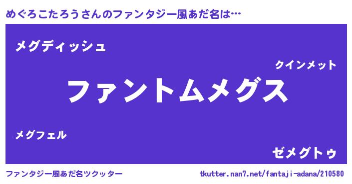 | ヘコむあだ名 | 『めぐぷりん』『めぐろこたろう(震え声)』 |