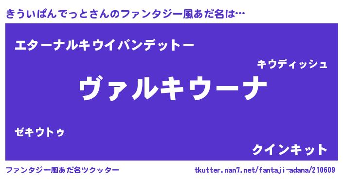 | 男性向けラノベタイトル風あだ名 | 『この素晴らしい世界にきういばんでっとを!』 |