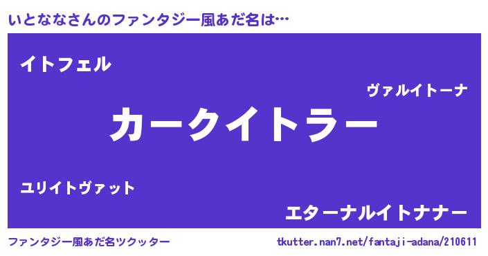 | 男性向けラノベタイトル風あだ名 | 『緋弾のイトナナ』『魔弾の王といとなな』 |
