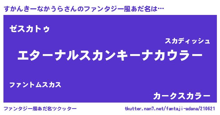 | 女子向けラノベタイトル風あだ名 | 『すかんきーなかうらの婚約者』 |