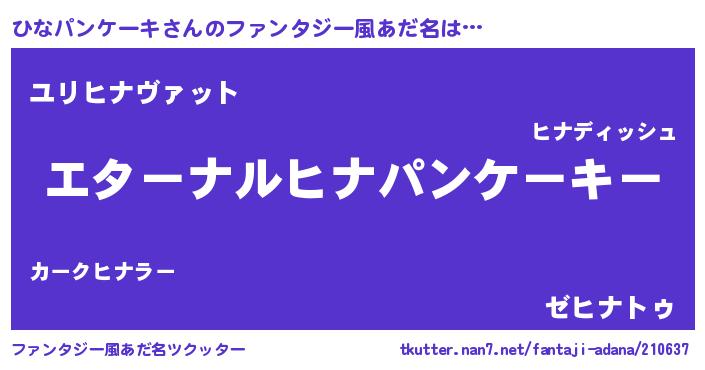 | 意味不明あだ名 | 『ひなパンケーキフォーエバー』 |