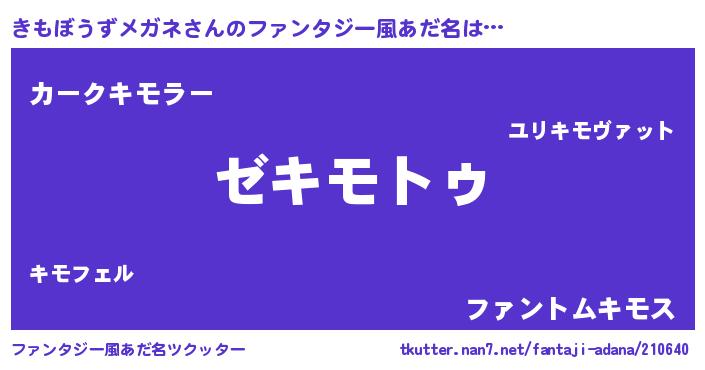 | 男性向けラノベタイトル風あだ名 | 『Re:きもぼうずメガネから始める異世界生活』 |