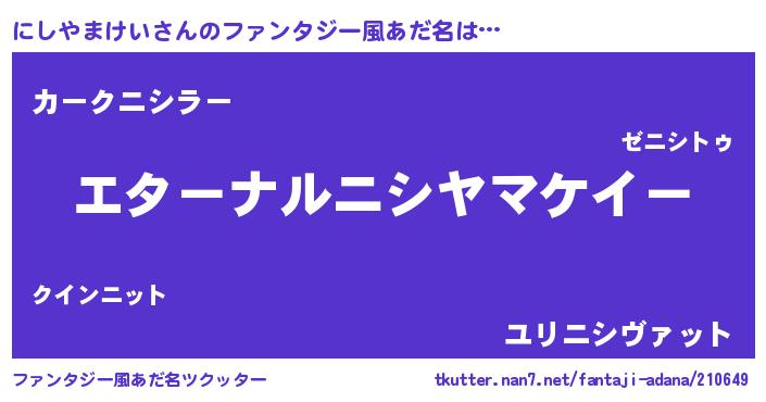 | 欧米人風あだ名 | 『にしやまけいクリステル』 |