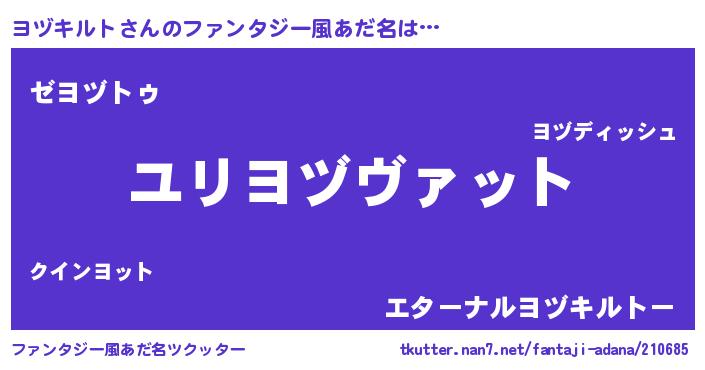 | 男性向けラノベタイトル風あだ名 | 『ヨヅキルトスレイヤー』 |