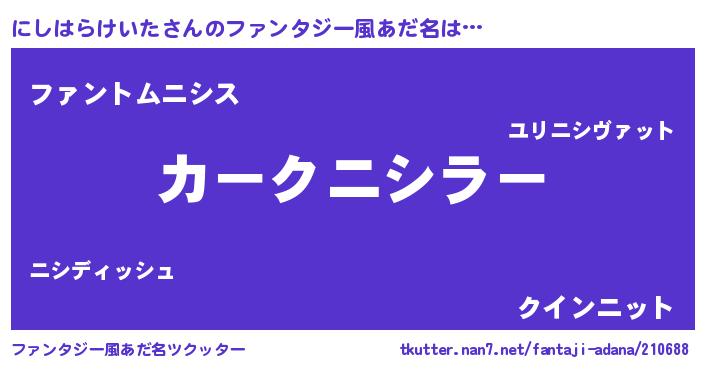 | 欧米人風あだ名 | 『にしはらけいた・ステッグマイヤー』 |