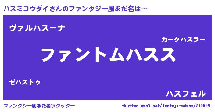 | 欧米人風あだ名 | 『ウサインハスミコウダイ』 |