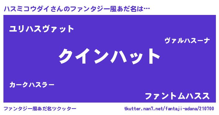 | 男性向けラノベタイトル風あだ名 | 『ハスミコウダイに滅ぼされるだけの簡単なお仕事です』 |