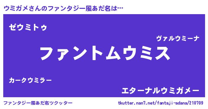 | 男性向けラノベタイトル風あだ名 | 『ダンジョンにウミガメを求めるのは間違っているだろうか』 |