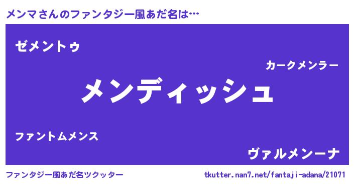 メンマさんのファンタジー風あだ名をツクッター!