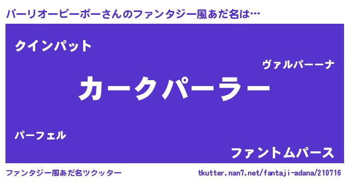 | 料理風あだ名 | 『パーリオーピーポーの炊き込みご飯』 |