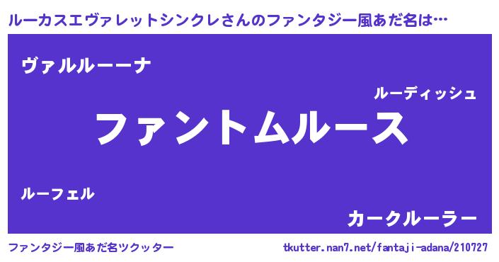 | 女子向けラノベタイトル風あだ名 | 『ルーカスエヴァレットシンクレ様がみてる』 |