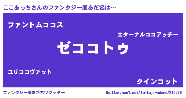 | 男性向けラノベタイトル風あだ名 | 『Re:ここあっちから始める異世界生活』 |