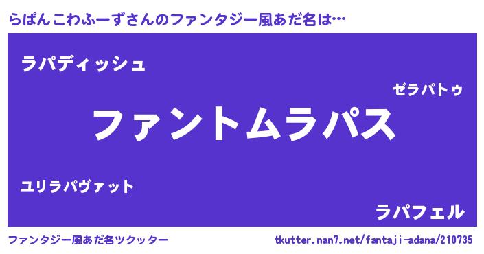 | ヒーロー風カッコイイあだ名 | 『幻影騎士ラパ』『ネオラパンコワフーズ』 |
