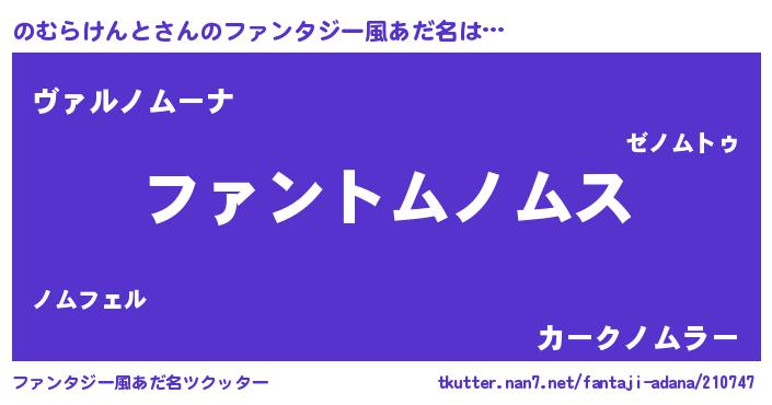 | 男性向けラノベタイトル風あだ名 | 『のむらけんとの嫁は女の子じゃないと思った?』 |