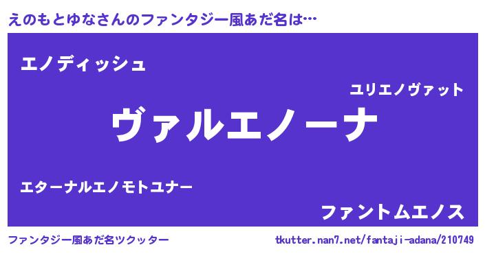 | 男性向けラノベタイトル風あだ名 | 『この素晴らしい世界にえのもとゆなを!』 |