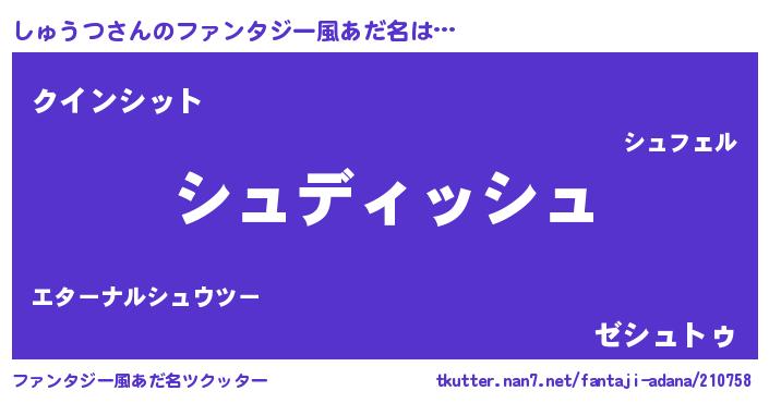 | 胡散臭い通販商品みたいなあだ名 | 『来世でも幸せになれる水素水…その名も「しゅうつ」』 |