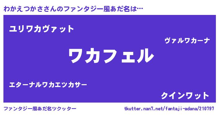 | 男性向けラノベタイトル風あだ名 | 『わかえつかさの憂鬱』 |