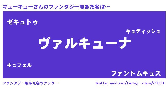 | 胡散臭い通販商品みたいなあだ名 | 『あなたにだけ特別に提供する100年もののヴィンテージワイン…その名も「キューキュー」』 |