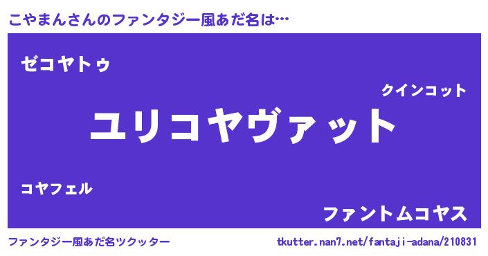 | 男性向けラノベタイトル風あだ名 | 『こやまんに滅ぼされるだけの簡単なお仕事です』 |