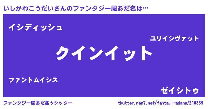 | 男性向けラノベタイトル風あだ名 | 『おまえをオタクにしてやるから、俺をいしかわこうだいにしてくれ! 』 |
