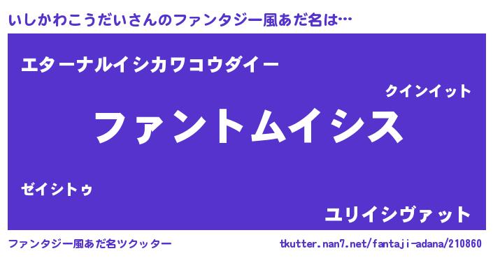 | 女子向けラノベタイトル風あだ名 | 『いしかわこうだい様がみてる』 |