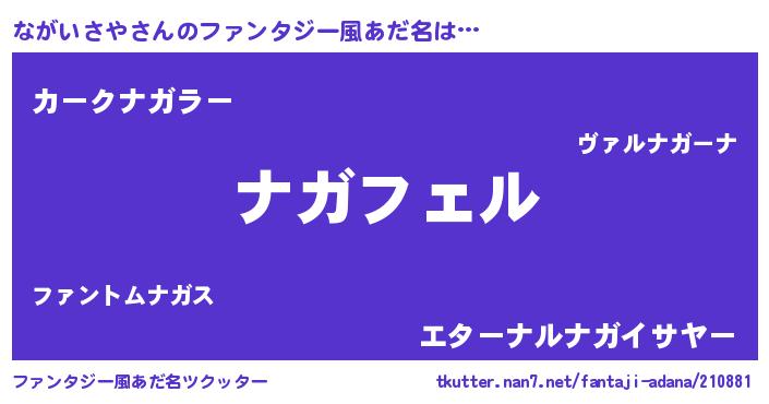 | 男性向けラノベタイトル風あだ名 | 『ナガイサヤアートオンライン』 |