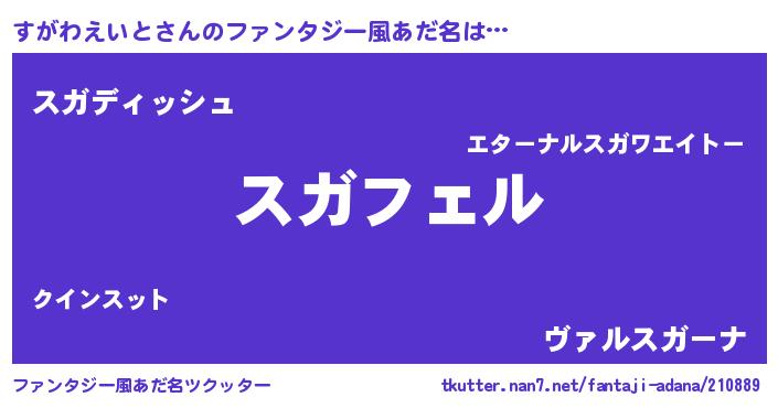 | 男性向けラノベタイトル風あだ名 | 『スガワエイトアートオンライン』 |