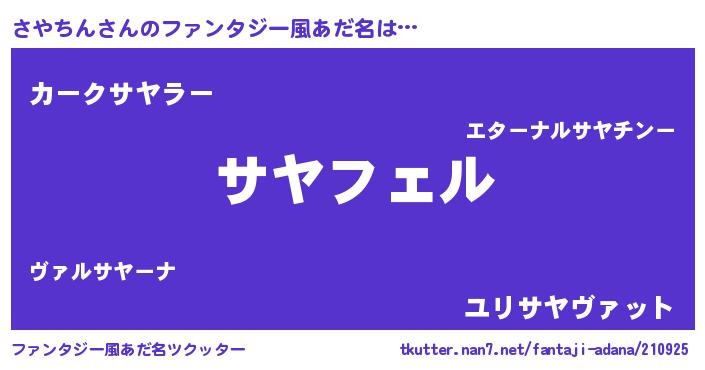 | 男性向けラノベタイトル風あだ名 | 『さやちんの憂鬱』『サヤチンスレイヤー』 |