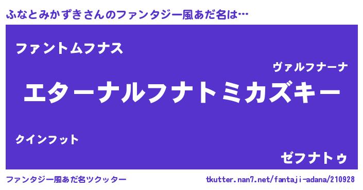 | ポケモン風あだ名 | 『フナトダネ』『ヒフナトミカズキ』 |