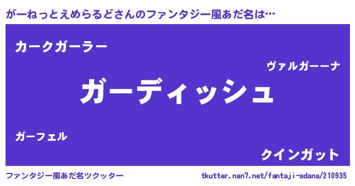 | 意味不明あだ名 | 『永久保存がーねっとえめらるど』 |