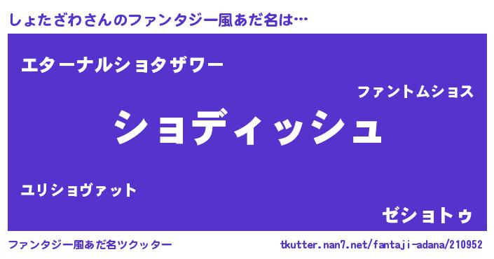 | 意味不明あだ名 | 『永久保存しょたざわ』『自称しょたざわ』 |