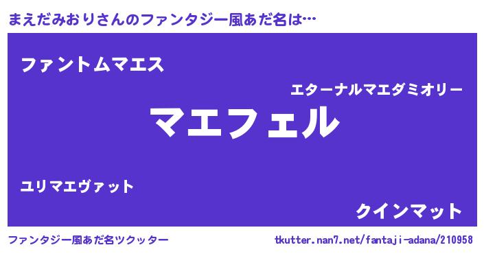 | 胡散臭い通販商品みたいなあだ名 | 『必ず成功するブレスレット…その名も「まえだみおり」』 |