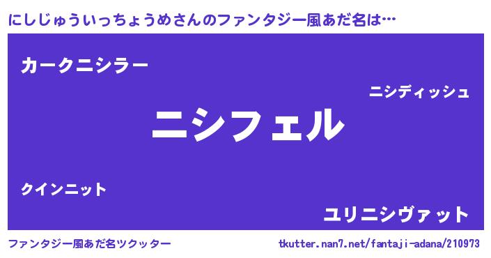 | 男性向けラノベタイトル風あだ名 | 『ニシジュウイッチョウメアートオンライン』 |