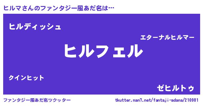 | 胡散臭い通販商品みたいなあだ名 | 『必ず成功する水晶球…その名も「ヒルマ」』 |