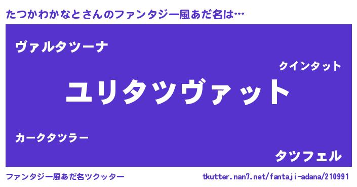| 男性向けラノベタイトル風あだ名 | 『転生したらたつかわかなとだった件』 |