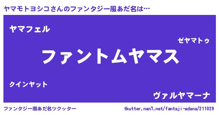 | 男性向けラノベタイトル風あだ名 | 『ヤマモトヨシコの嫁は女の子じゃないと思った?』 |