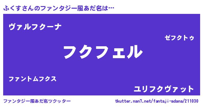 | 男性向けラノベタイトル風あだ名 | 『ふくすの憂鬱』『魔弾の王とふくす』 |