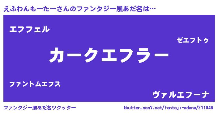 | 自動車の名前っぽいあだ名 | 『フェエーフ』『エフティマ』 |