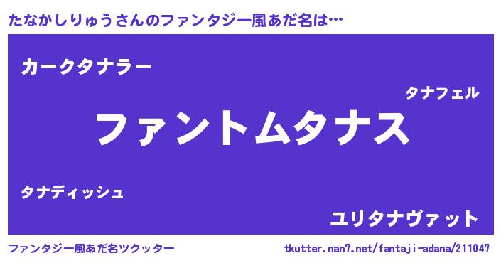 | 男性向けラノベタイトル風あだ名 | 『ダンジョンにたなかしりゅうを求めるのは間違っているだろうか』 |