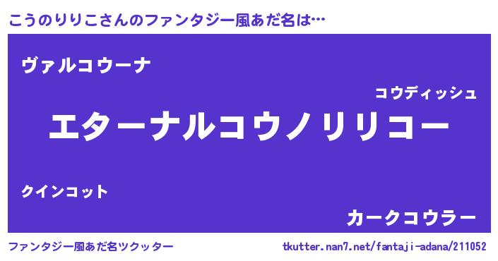 | 欧米人風あだ名 | 『こうのりりこクリステル』 |