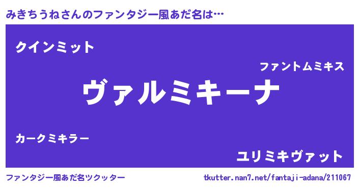 | 意味不明あだ名 | 『住所不定無職みきちうね(6歳)』 |