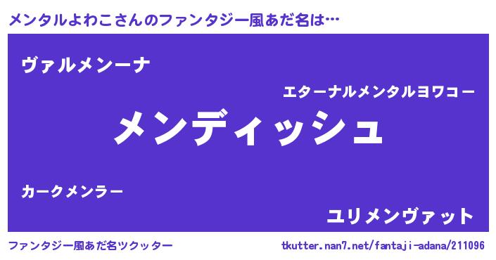 | 男性向けラノベタイトル風あだ名 | 『メンタルよわこという概念が存在しない退屈な世界 』 |